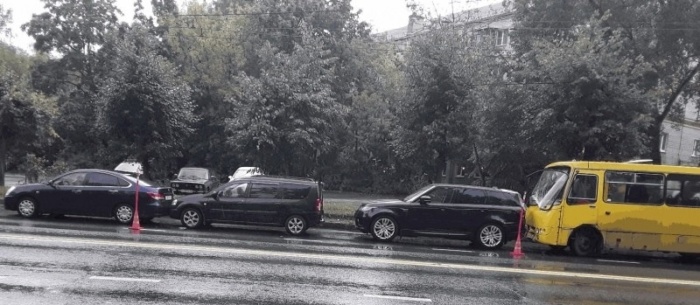 В 14-10 на улице Громобоя 25-летний молодой человек, управляя автобусом «Богдан», совершил столкновение с движущимся впереди в попутном направлении автомобилем «Ленд Ровер Рейндж Ровер Спорт», под управлением 30-летнего мужчины, который от удара совершил наезд на стоящий впереди в попутном направлении автомобиль «ЛадаЛаргус», под управлением 27-летнего молодого человека, который от удара совершил наезд на стоящий впереди в попутном направлении автомобиль «Ниссан Альмера», под управлением 24-летнего молодого человека. В результате ДТП пострадали: 1.водитель автомобиля «Ленд Ровер» с травмами доставлен в больницу; 2.пассажир автобуса – 10 летняя девочка с ушибом коленного сустава доставлена в больницу; 3.пассажир автобуса – 29-летний молодой человек с травмами доставлен в больницу. Все водители трезвы.