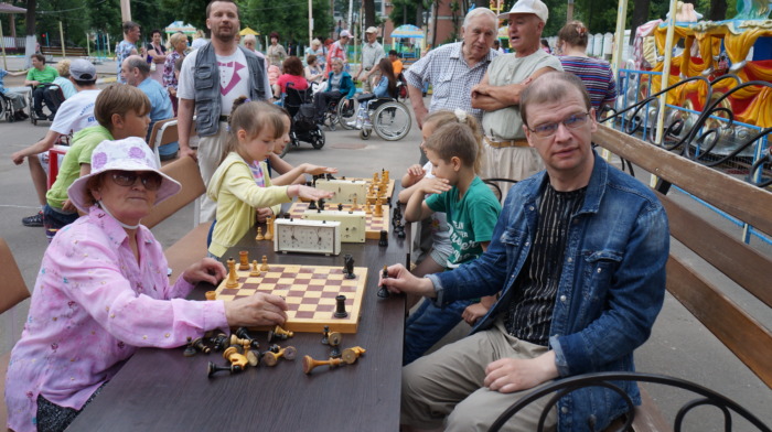 | Любители игры в шахматы и шашки встретились в Городском детском парке В Городском детском парке в День города развернулся целый шахматный клуб. Все желающие, несмотря на уровень подготовки, могли принять участие в блиц-турнире по шахматам и шашкам. Там же в День города состоялись соревнования для людей с ограниченными возможностями здоровья «Твоя параллель». Соревнования традиционно организуются комитетом молодежной политики, физической культуры и спорта Администрации города Иванова при активном участии ветеранов ивановского спорта и воспитанников детско-юношеских спортивных школ. Данные соревнования традиционно проводятся в рамках празднования Дня города Иванова в целях реализации возможности всех категорий горожан провести праздничный день ярко, насыщенно и спортивно. Как отмечают сами участники, в основном это инвалиды-опорники, подобные мероприятия – прекрасная возможность испытать свои силы, как физические, так и духовные, а также пообщаться. | |