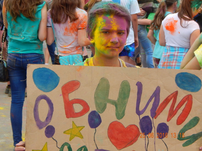 | В День города в Иванове прошел фестиваль красок «Холи» В День 145-летия города Иванова, который отмечался в прошедшую субботу, 25 июня, разных ярких и интересных мероприятий для жителей и гостей города было множество! У людей всех возрастов был выбор, куда пойти, чтобы запомнить праздник надолго и получить массу впечатлений и эмоций. На площадке перед ТРК «Тополь» состоялся фестиваль красок «Холи», в котором приняли участие несколько сотен ивановцев. Пачкать одежду друг другу, обниматься с разукрашенными незнакомцами и кидаться друг в друга краской – именно это не просто разрешалось, а даже приветствовалось. При этом еще одним пожеланием к участникам было приходить на праздник непременно в белой одежде и с хорошим настроением. Справочно: | |