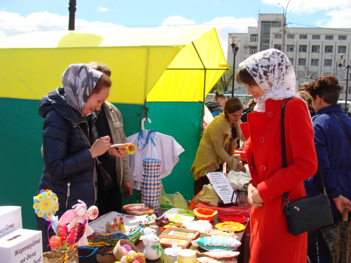 На ярмарке, которая была организована Иваново-Вознесенской епархией, была представлена экологически чистая продукция, выращенная и изготовленная в монастырях и приходах епархии: хлеб, молочные продукты, чай, квас, монастырская выпечка и многое другое. Кроме этого, каждый мог приобрести для себя или в подарок памятные сувениры, игрушки, предметы домашнего обихода, изготовленные воспитанниками воскресных школ города Иванова. Педагоги воскресных школ провели несколько мастер-классов - по мыловарению, по работе с атласными лентами, с вощиной и воском. Также на площади Победы состоялся вокальный концерт, подготовленный хоровым коллективом Успенского кафедрального собора и детскими коллективами воскресных школ г. Иванова. В рамках работы данной площадки Миссионерский отдел Иваново-Вознесенской епархии презентовал проект «Живая память». Он посвящен нашим землякам, погребенным на исчезнувших кладбищах областного центра. На протяжении ряда последних лет Миссионерский отдел осуществлял работу по составлению синодиков жителей села Иванова, Вознесенского посада и города Иваново-Вознесенска. Она проводилась на основе дореволюционных документов храмов – метрических книг, хранящихся ныне в Государственном архиве Ивановской области. В работе над проектом принимали участие приходские активисты Успенского кафедрального собора, сестры Введенского женского монастыря, братия и прихожане Архиерейского подворья храма в честь иконы Божией Матери «Всех скорбящих Радость», священнослужители и прихожане Фурмановского и Приволжского районов. Православные христиане, данные о которых содержатся в части из составленных синодиках, погребены в районе современных площади Революции, площади Пушкина, площади Ленина, на территории Успенского мужского монастыря («Сад живых и мертвых» на улице Смирнова) и микрорайона Авдотьино. | |