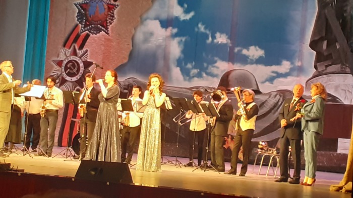 В ЦКиО "ИВТЕКС" состоялось последнее в нынешнем "учебном" году заседание городского клуба "Ветеран". Главная тема встречи - День Победы - буквально звучала - в холле прошел мини-концерт преподавателя Ивановского музыкального училища Александра Николаевича Кузнецова и его баяна, давший возможность участникам клуба и спеть, и потанцевать. Молодые участники движения "Волонтеры Победы" вручали участникам встречи георгиевские ленточки. Затем в Большом зале участников встречи приветствовали председатель Ивановской городской организации ветеранов Николай Иванович Быстров и руководитель Управления социальной защиты населения Администрации города Любовь Михайловна Семенова. Слова признательности "серебряному" сообществу, поздравления с главным праздником страны - Днем Победы. Затем наступило время концерта, сегодня ветеранов города приветствовал своим творчеством оркестр духовых инструментов Ивановского музыкального училища (руководитель оркестра - Почетный работник культуры Ивановской области, двукратный обладатель городской премии в области культуры "Триумф" Валерий Юрьевич Пресняков), блестяще вокально солировали в концерте Екатерина Пирвердян и Дарья Бурцева - преподаватели училища. Студенты училища - оркестранты - показали силу своего творческого умения. Эстрадно-джазовые композиции в начале концерта, а затем прекрасная программа военных песен, не оставившая равнодушным никого! В завершении концерта директор Ивановского музыкального училища Алла Геннадьевна Бурлакова выразила искреннюю признательность собравшимся ветеранам за ратный и трудовой подвиг и высокую оценку творчества коллективов училища.