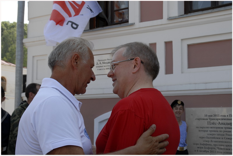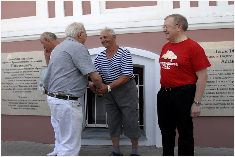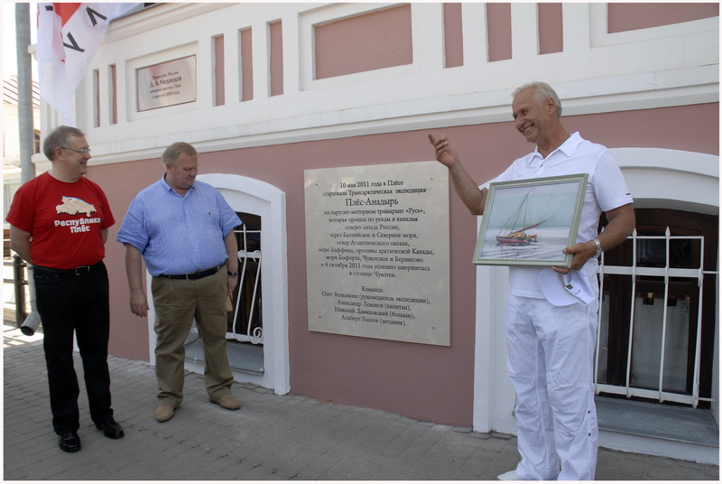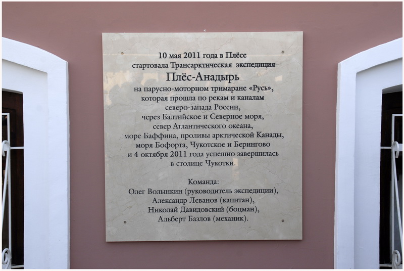 Масштаб подвига, в честь которого была открыта вторая памятная доска, оценит история, однако значимость его отрицать не приходится. 10 мая 2011 года в Плёсе был дан старт трансарктической экспедиции Плёс — Анадырь во главе с путешественником Олегом Волынкиным. Именно её успех позволил Волынкину и его команде войти в пантеон славных русских путешественников, сумевших первыми покорить доселе неизведанное. Им впервые удалось пройти кругосветку через самый сложный, арктический путь на самом, казалось бы, не подходящем для этой затеи плавсредстве — тримаране.