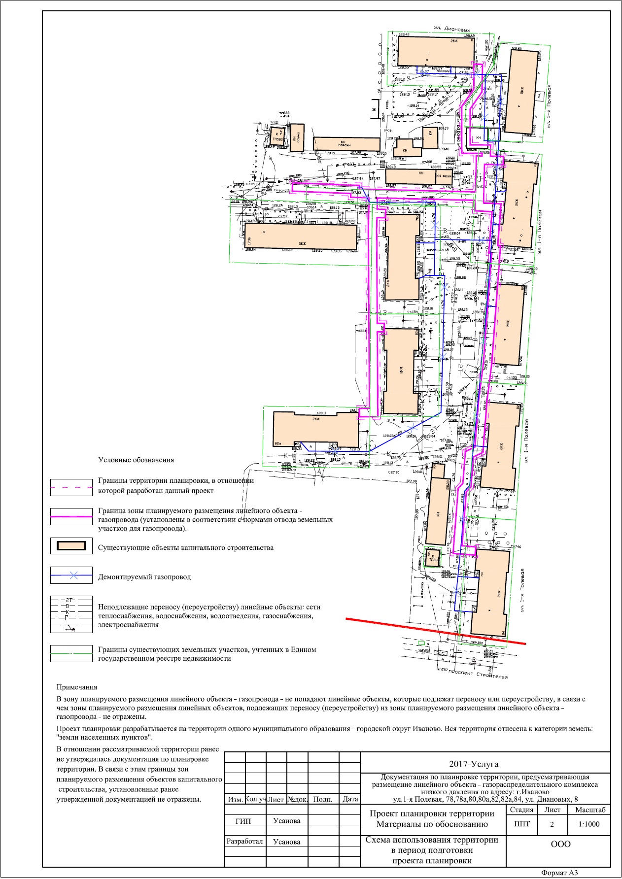 предусматривающей размещение ливневого объекта – разделительный газопровод низкого давления по адресу: город Иваново, улица 1-я Полевая, дома 78, 78а, 80, 80а, 82, 82а, 84 и улица Диановых, дом 8