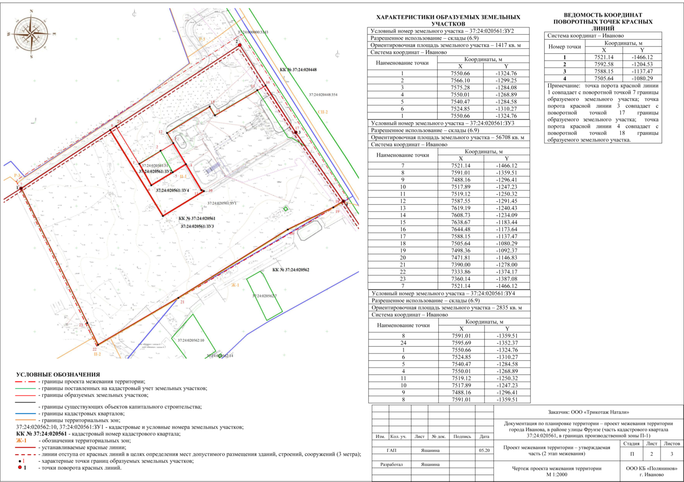 Документация по межеванию территории города Иванова, в районе улицы Фрунзе (часть кадастрового квартала 37:24:020561, в границах производственной зоны П-1)