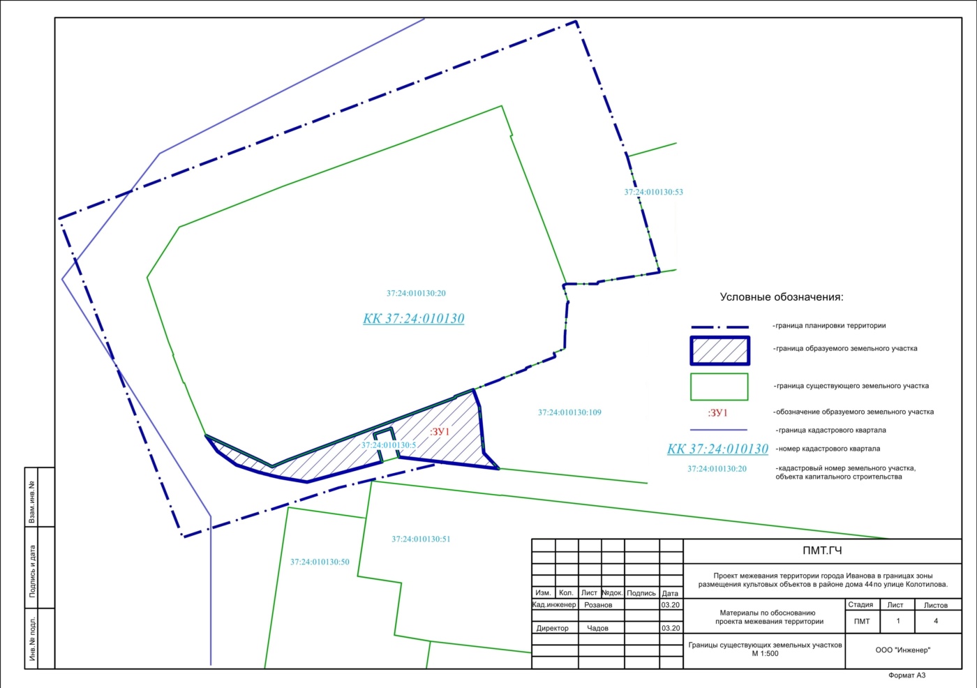 Документация по проекту межевания территории города Иванова в границах зоны размещения культовых объектов в районе дома 44 по улице Колотилова